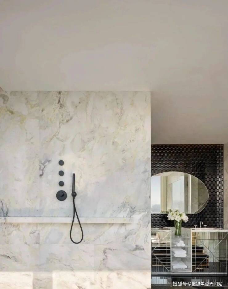 从选材来看 ,各种奢侈品级石材随处可见,比如与 北京钓鱼台国宾馆同款的意大利进口 鱼肚白石材 ,造价高达约2万/㎡,被誉为“世界上最贵的石材之一”!