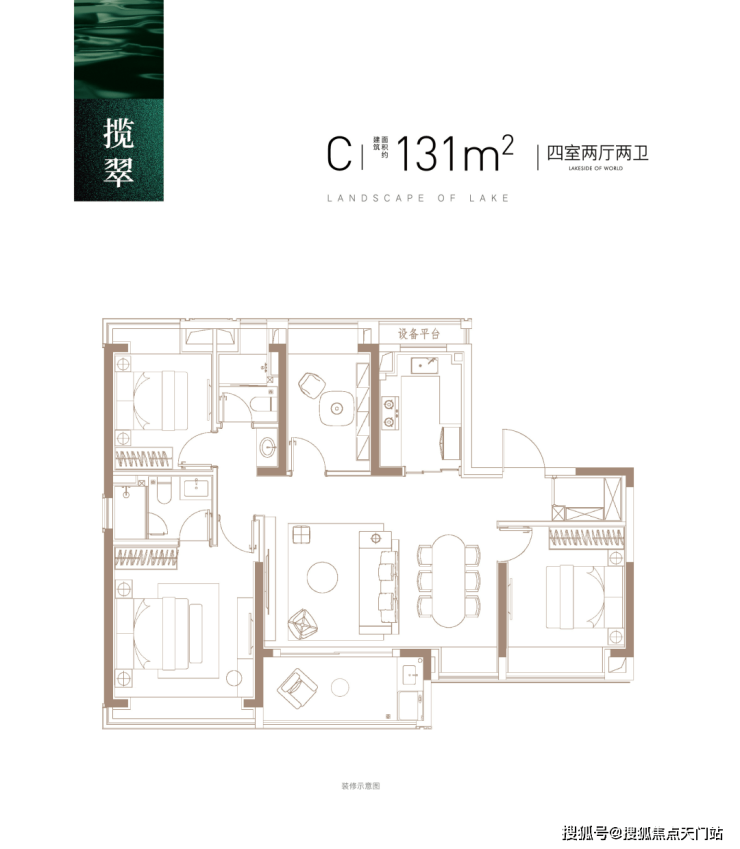 建面约131㎡4房2厅2卫,两梯两户设计,给足了业主归家仪式感和尊崇感,同时拥有一个尺度阔绰的入户门厅作为自己家的延伸!