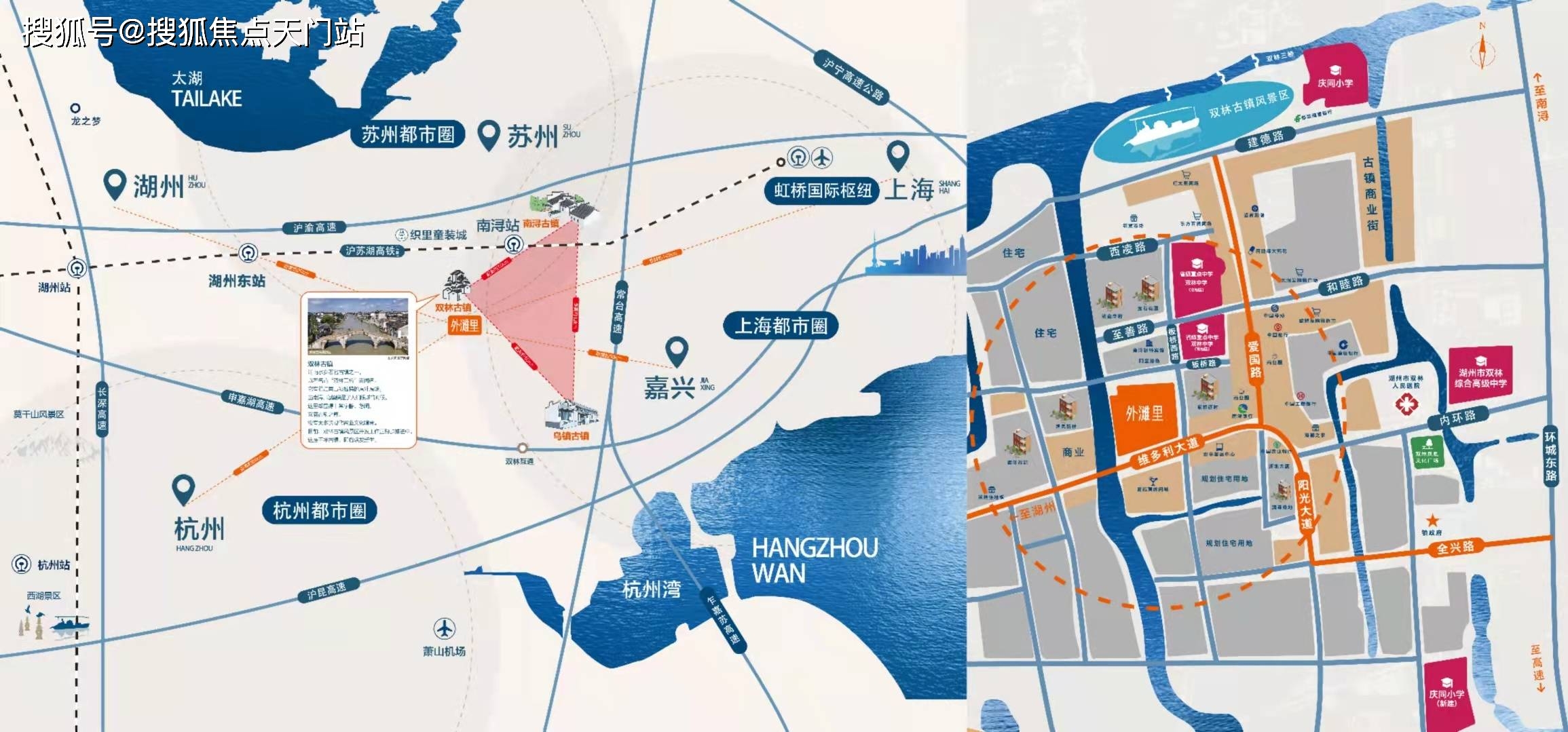 双林的交通非常便捷,无论是周边的高速,还是在建的沪苏湖高铁南浔站都离项目很近。申嘉湖高速双林收费站距离本项目仅约2公里,一个小时可达上海、杭州、苏州等长三角重点城市。高铁南浔站距离本项目在10公里以内,预计2022年正式通车,直达上海虹桥仅需约25分钟。