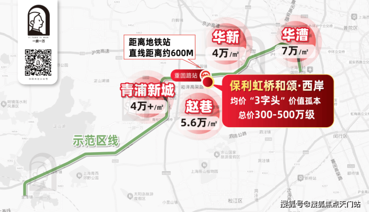反观坐拥重固站核心区位的保利虹桥和颂·西岸,目前仍是该沿线少有的“3字头”的价值孤本。