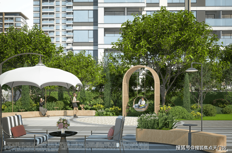 从入口处的大树聚场、再到中央拾景花园、儿童秘境花园、运动活力花园、琉光水院、林影花园,以及由玫瑰、玉兰、丹桂、紫薇构成的四季花园,真正实现全龄、全时、全场景的社区自然互动。