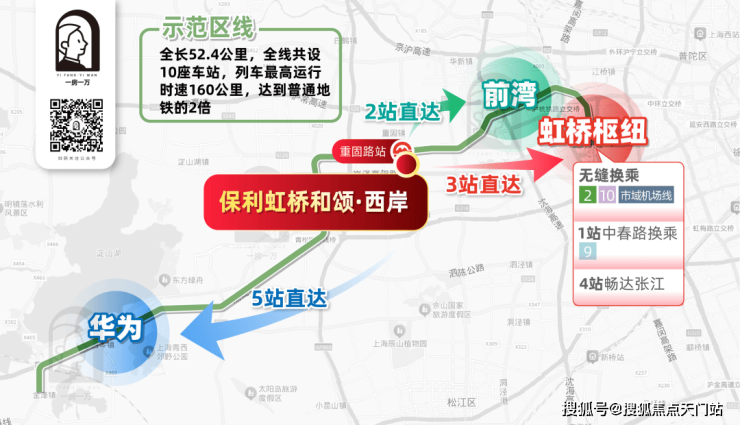 从项目出发,2站直达前湾、3站速抵虹桥核心区、5站即达华为研发基地,更可在虹桥枢纽无缝换乘2号线、10号线,高效连接人民广场、静安寺等城市核心商圈。