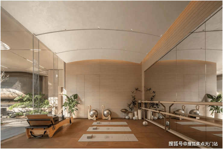 自然贯穿了整个社区公区的设计语言,整体约1200㎡立体会所+约1700㎡主题架空层,配备了私宴厅、瑜伽室、棋牌室等休闲空间。