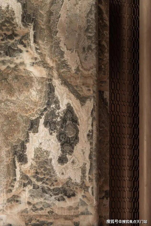 整个公区的引入沉香米黄、透光云石、安哥拉黑、福鼎黑、橙皮红、宝格丽紫等近二十种全球奢石,宛如一座流动的奢石博物馆。
