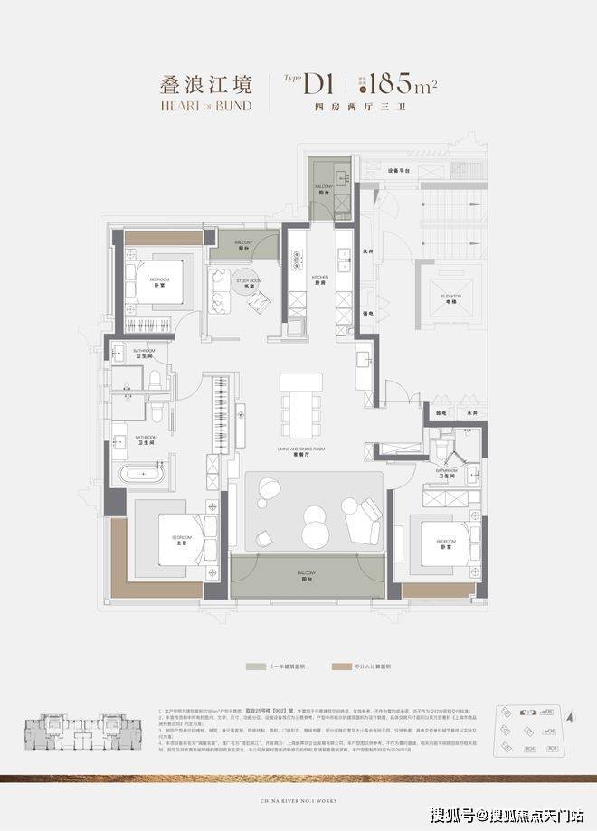 更难得的是,项目185㎡户型堪称上海滨江之上的园境栖居典范。