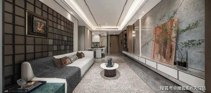 比如,该样板间的吊顶采用了工艺水准更高的圆弧形吊顶,空间过渡圆润自然,营造了丰富的层次感,使得整个户内空间更加舒适阔绰。