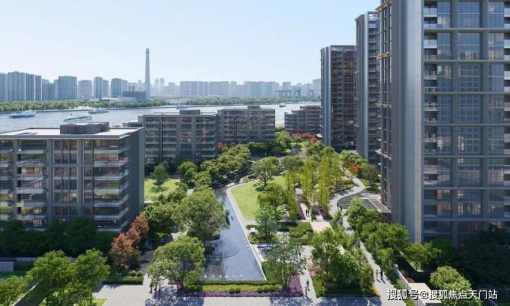 景观设计方面,保利世博天悦采用引江入园、以水带路的手法,将滨江舒阔的国际生活平移到社区内,打造约6万㎡景观秘境,媲美全球奢华酒店。采用大面积的留白和现代禅意的表现手法,呈现开阔舒展的质感。