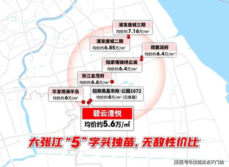而周浦已售罄的招商南昌市政公园1872售价早就到6万/㎡,华发观澜半岛也是6万/㎡。均价5.6万/㎡,最低总价459万起的碧云澧悦,不仅是周浦更具性价比的楼盘,还妥妥是整个大张江的门槛价。