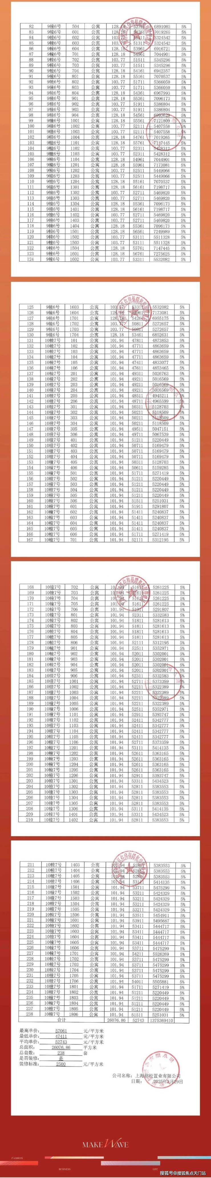 2024年1月10日,经过56路竞价,最终 招商以52.5亿摘下松江区泗泾镇SJS20005单元14-01、16-02、17-07号地块,地块位于9号线泗泾站北侧,出让面积129624.71㎡, 房地联动价51100元/㎡。