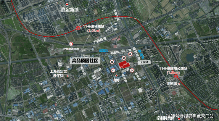 交通方面,地块距离11号线陈翔公路站直线1.6公里左右,沪宜公路、沪嘉高速、翔江公路等城市主干道环伺,交通能级高。