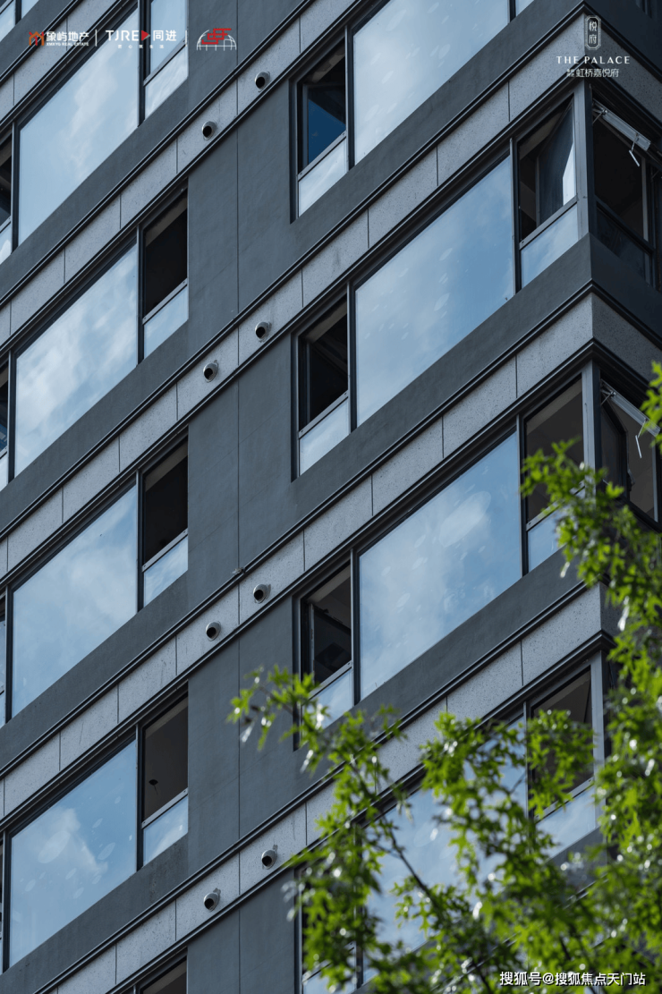 建筑方面,虹桥嘉悦府汲取高级灰经典美学灵感,以珍珠蓝石材、多彩仿石漆、深灰色铝板搭配宽幕玻璃,整体呈现玻璃流幕现代立面,经典永不过时。