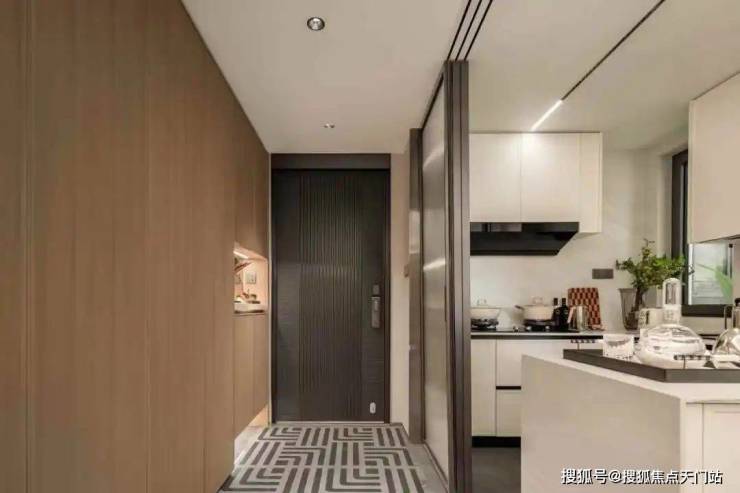 入户门厅以弧形悬浮顶棚为特色,为业主带来柔和温润的归家关怀,让归家的每一步都充满舒适与惬意。