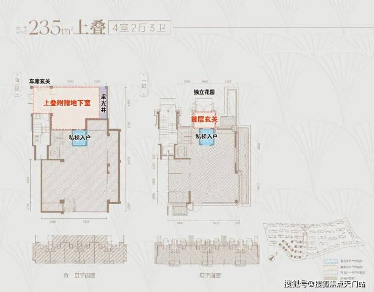 首先,上叠是北向私享入户花园,独门独户,室内私家电梯,尊崇感与私密性都有保障。