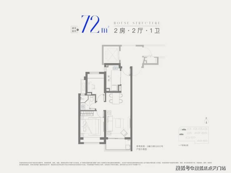 建面约72㎡2房1卫,做到双开间朝南+全卧室带飘窗总价低至2字头 ,是刚需上车2房的优质之选。