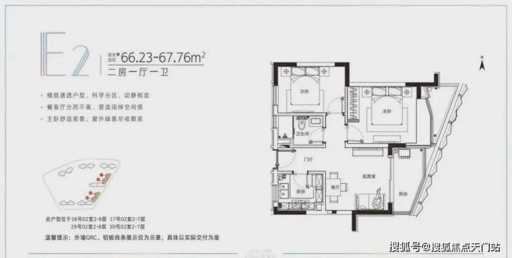 建面约78-91.22平米的小户型,两房两厅一卫的格局,非常适合年轻刚需家庭上车。