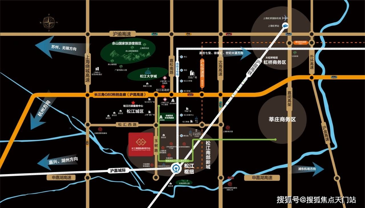 高铁:紧邻松南高铁站,接入沪苏湖线(在建)、沪昆线(在建),沪杭(立项待建)三条高铁,通达江浙皖,融入长三角