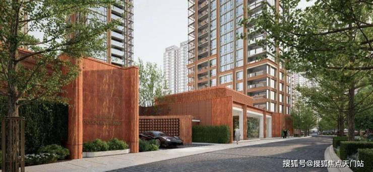 社区景观上,突破市区项目常见的「兵列树阵式」布局,通过建筑楼体的精密偏转,形成罕见的围合式社区形态。