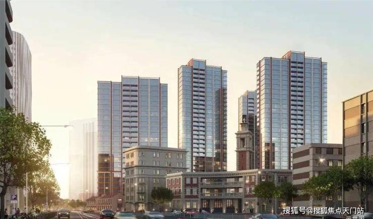 外立面上,高层基座溯源石库门建筑精髓,复刻经典拱券符号;中段以通透玻璃幕墙搭配流线型金属线条,营造国际前沿的现代质感;顶部“冠冕”造型,进一步升华昭示性。