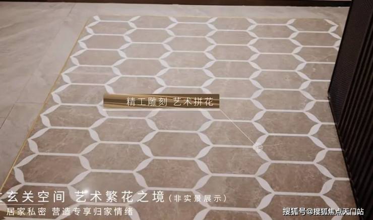 当然,超出我们预期的是,在约126㎡的户型中,装标再次升级:入户玄关采用海派风格中常见的整块艺术拼花设计+金属包边,仪式感更加突出: