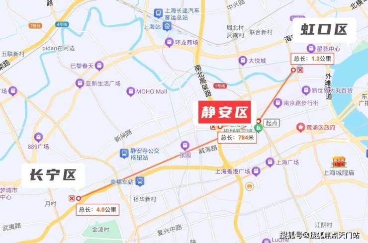 项目 直线距离静安内环仅约800米! 直线距离 静安寺-南京西路商圈仅约4400米! 是大宁名副其实的“地王位置”!