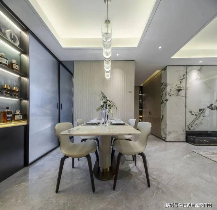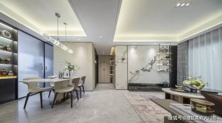 餐厅空间相当阔绰,可放置 四人桌或六人桌 , 尺度之大在600万级产品中非常难得一见。