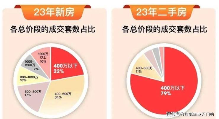 仅是2023年,总价400万以内的新房就已成交近1.2万套,占比约22%。而在二手房市场,这一数据要高上7.6倍,总价400万以内二手房成交9.16万套,占比约79%。