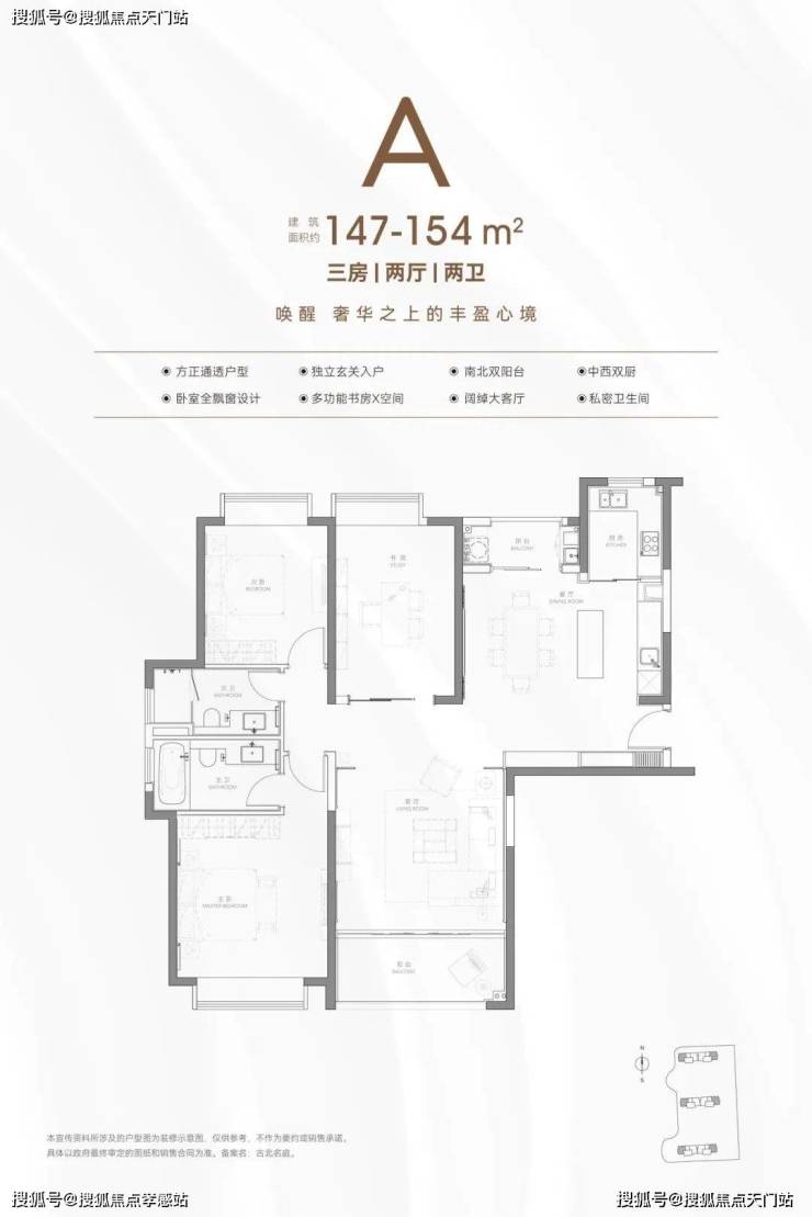 项目3房你能看到大尺度餐客厅空间,能看到“中西厨”,能看到南北双阳台。