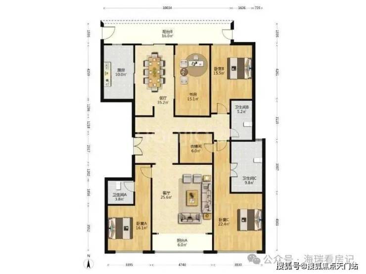 面积:233.08㎡ 户型:4房2厅3卫 售价:4600万
