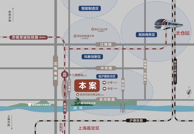 上海嘉闵线(含北延伸)是上海首条延伸至周边城市的市域铁路,设计速度160km/h,在娄江新城域内设3座站点,进入太仓的排名前列站就是十八港站。