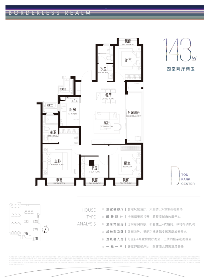 270度转角大阳台,IMAX级观景面尽收眼底,进一步凸显了内外皆公园的景观资源优势。次卧可以推门即达阳台,双向出入动线灵活自由,增添便捷与温馨。