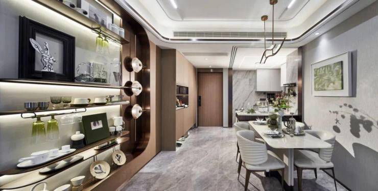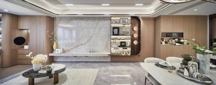 全屋墙布,客厅背景墙岩板交付,在装标方面可谓诚意满满。 新风系统、地暖系统、中央空调,给你恒温恒净恒湿的四季如春,充分满足人们在“住”上的实际需求。