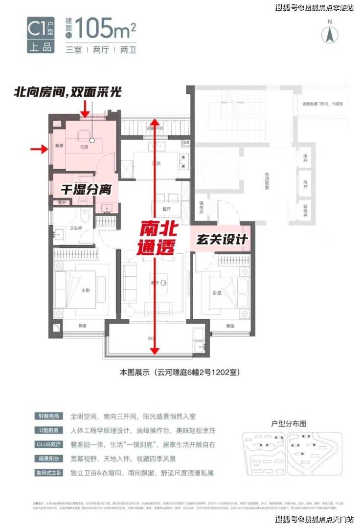 次卫干湿分离是标配;北向书房双面采光也是同级很大的亮点。