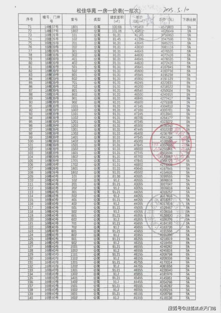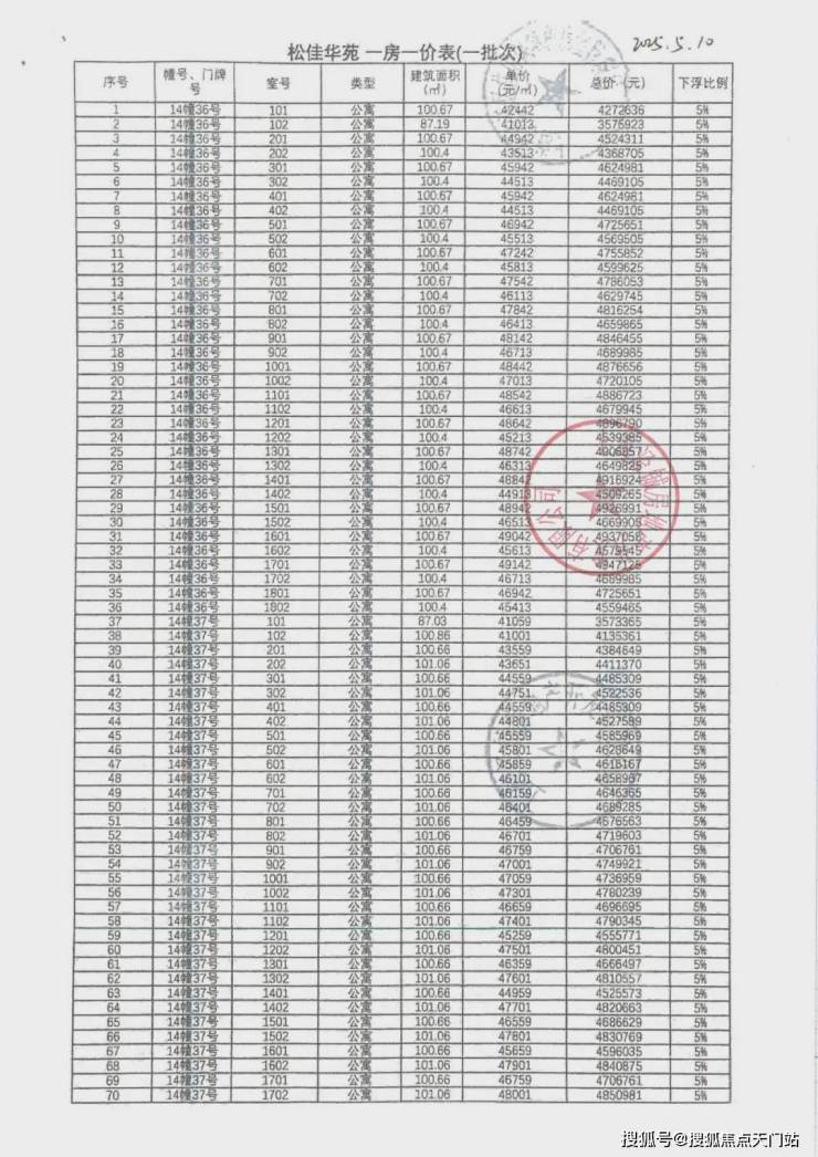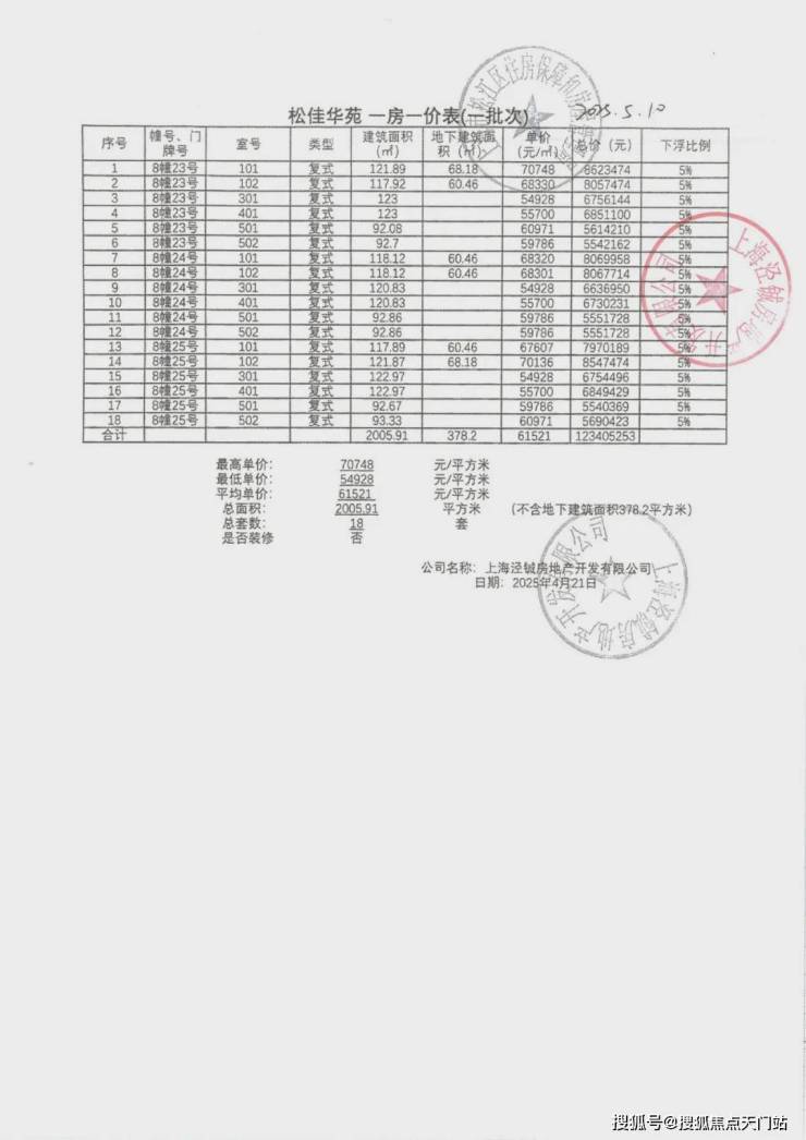 一房一价表如下: