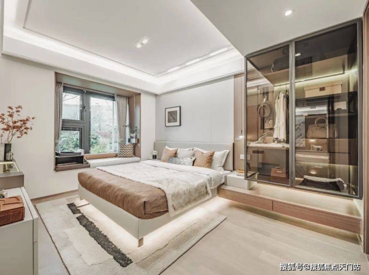 精选钢木复合门、臻选雅艺壁布、自然木饰面、全景一体化岩板背景墙等精奢材质,搭配充满仪式感的氛围灯带、打磨移门、踢脚线、过门石等每一处细节。
