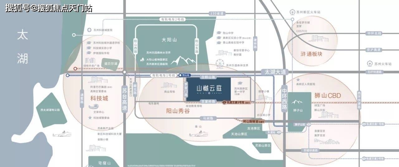 教育配套:苏州高新区实验小学阳山分校、苏外附属阳山幼儿园、伊顿国际学校、高新区排名前列中学科技城校区(在建)、景山实验高级中学(在建)