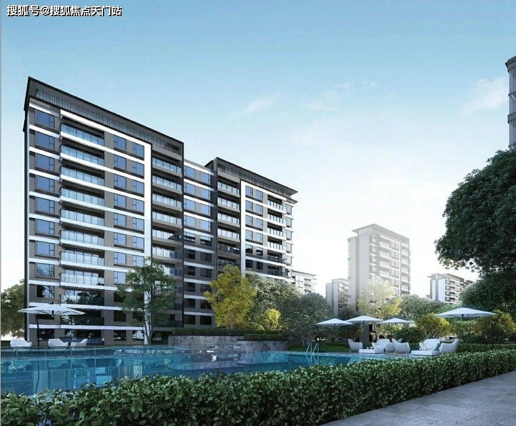 建筑外立面:公建化外立面+米白色真石漆+玻璃栏杆和铝板=现代轻奢风格