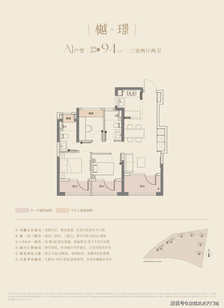在这里,高层建面约94㎡户型做到了惊人的三阳台,对比同板块内以前的标杆小区,同面积段户型只做了1个阳台。不仅数量发生质的变化,实得面积也大大增加。