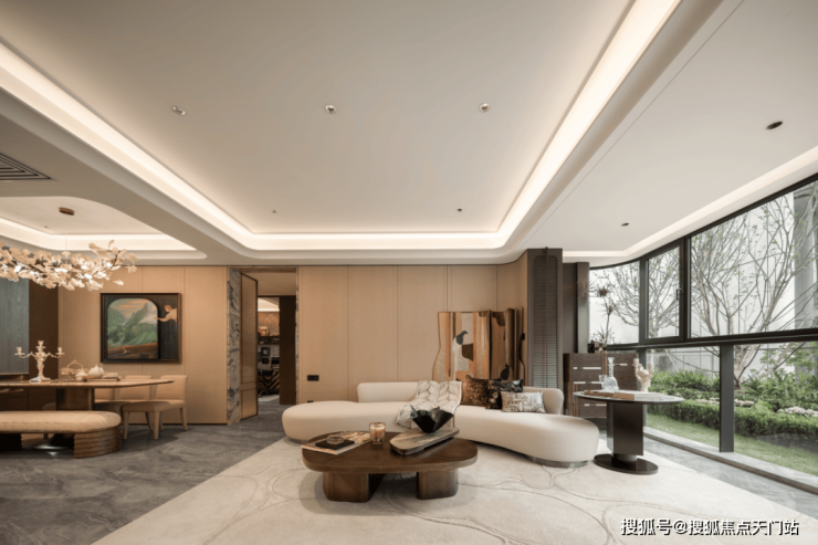 不计成本打造大量定制化米黄色石材饰面、奢玉、奢石搭配海派金属的装饰,细节与调性堪称板块标杆!