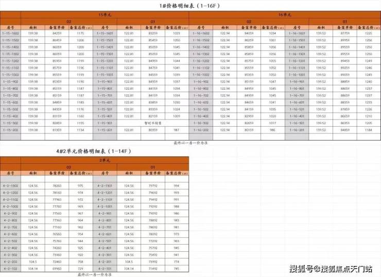 最新一房一价表:
