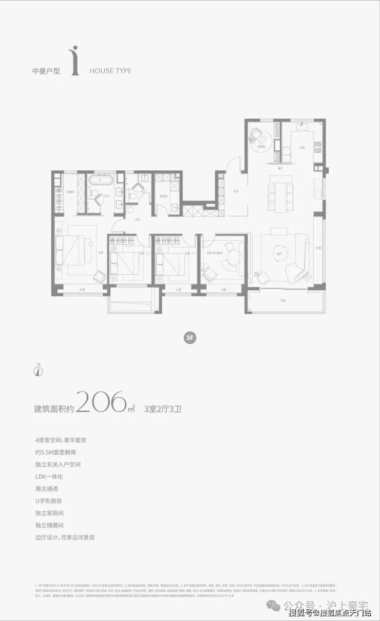 建面约138㎡的中间套户型,与边套略有差异,但同样尺度感强、细节满满