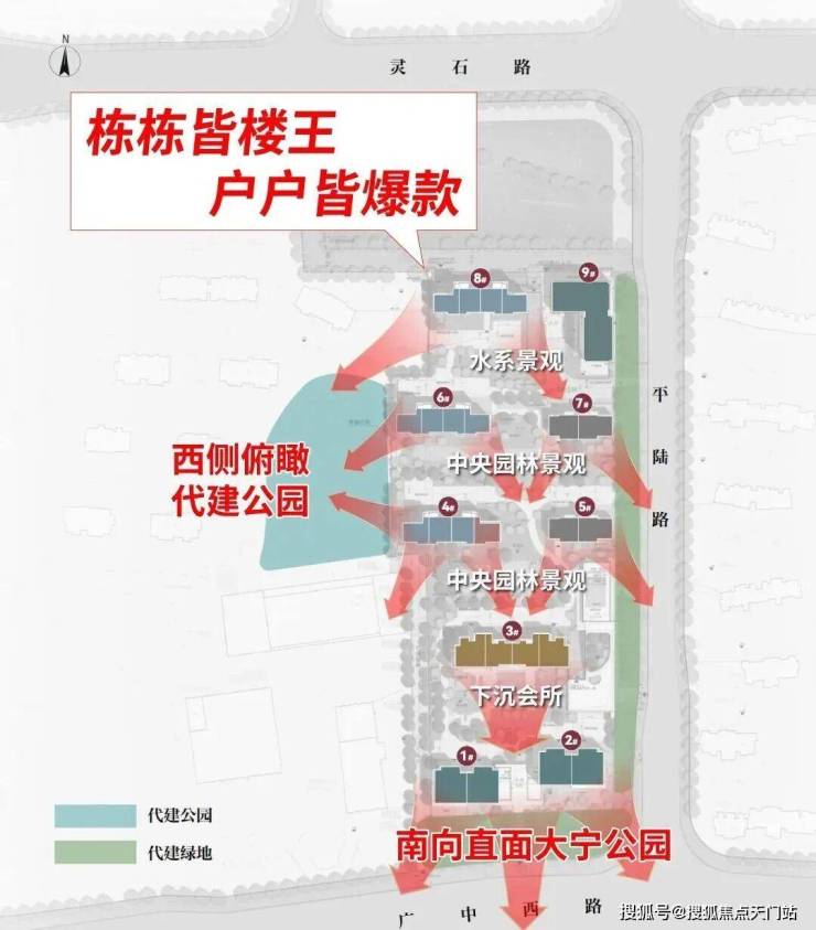 「中建·玖上琅宸」打造了一个约99米宽的超级界面门头,有非常强的豪门大宅即视感。