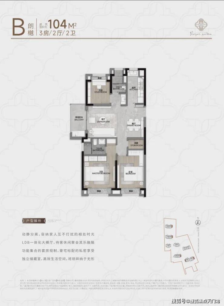 项目预计加推的三期房源,主要包括建面约98-107㎡2-3房。看点有三: