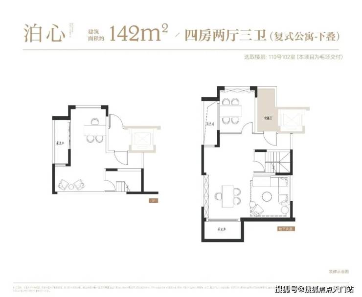 项目叠墅户型有建面约142㎡下叠,建面约139㎡上叠。