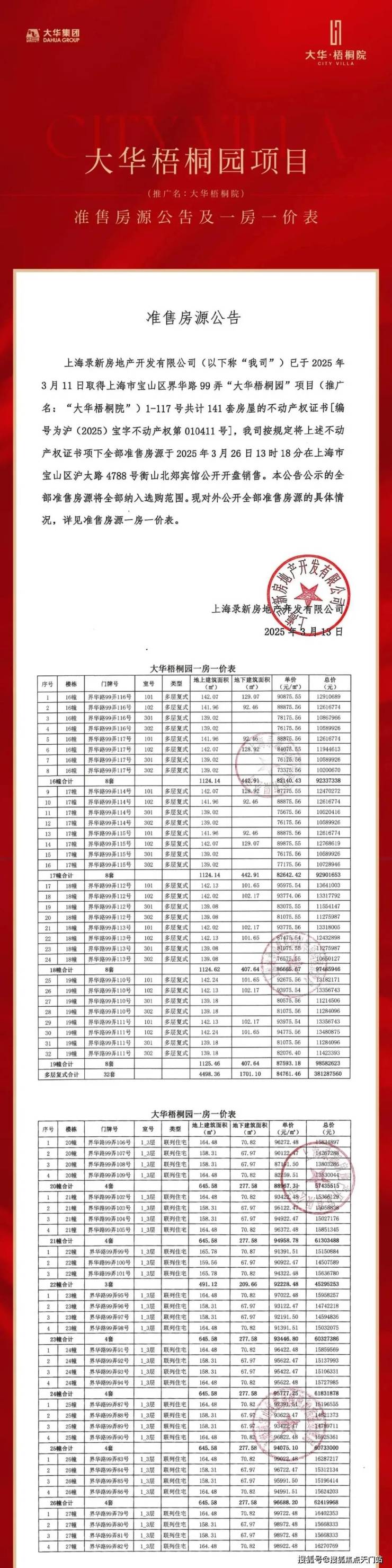 据悉,【 大华梧桐院】将推约139-142㎡叠加别墅、158-165㎡联排别墅,总计141套,均价91800元/㎡,正在认购中!