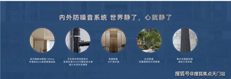 内外防噪音系统:室内楼板加厚至130mm、卫生间采用同层排水并增加8mm高密度隔音垫、电梯降噪分户墙升级、社区降噪设置隔音的天然屏障、截水沟盖板加强避免行车异响...