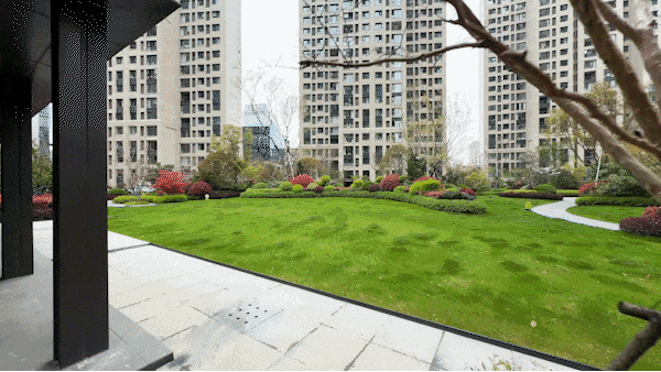 社区以 约1.29万方园林绿境 为核心,营造四重归家仪式感:入口礼序仪制、沿途归家花境、中央景观草坪、沉浸式主题景苑,步步皆景。