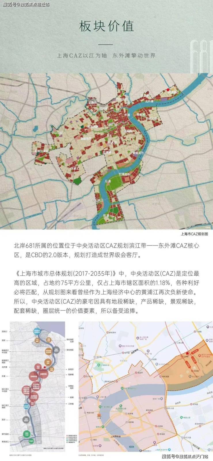 北岸681所属的位置位于中央活动区CAZ规划滨江带一一东外滩CAZ核心