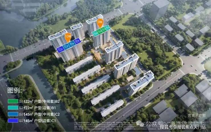 根据方案,项目拟建8栋16-17层高层住宅(含1栋17层保障房),以及5栋6层住宅,共计686户。小区人车分流;车位比约1:1.8,社区内部有水景、下沉式庭院。