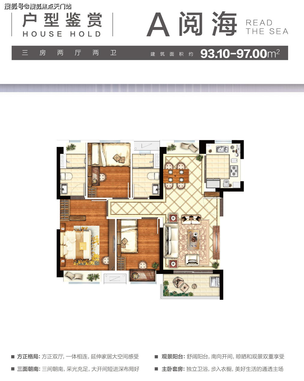 建面约:93-97㎡ 户型:219-320万 3房2厅2卫