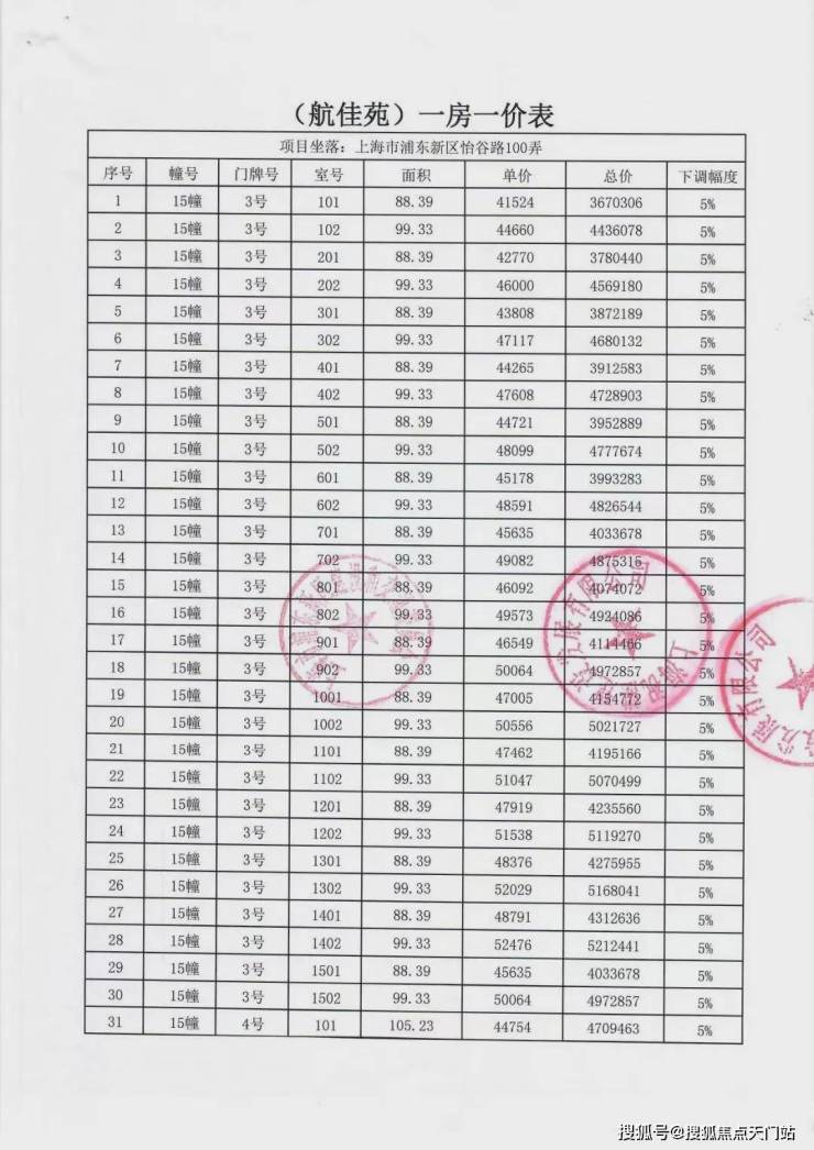 一房一价表: